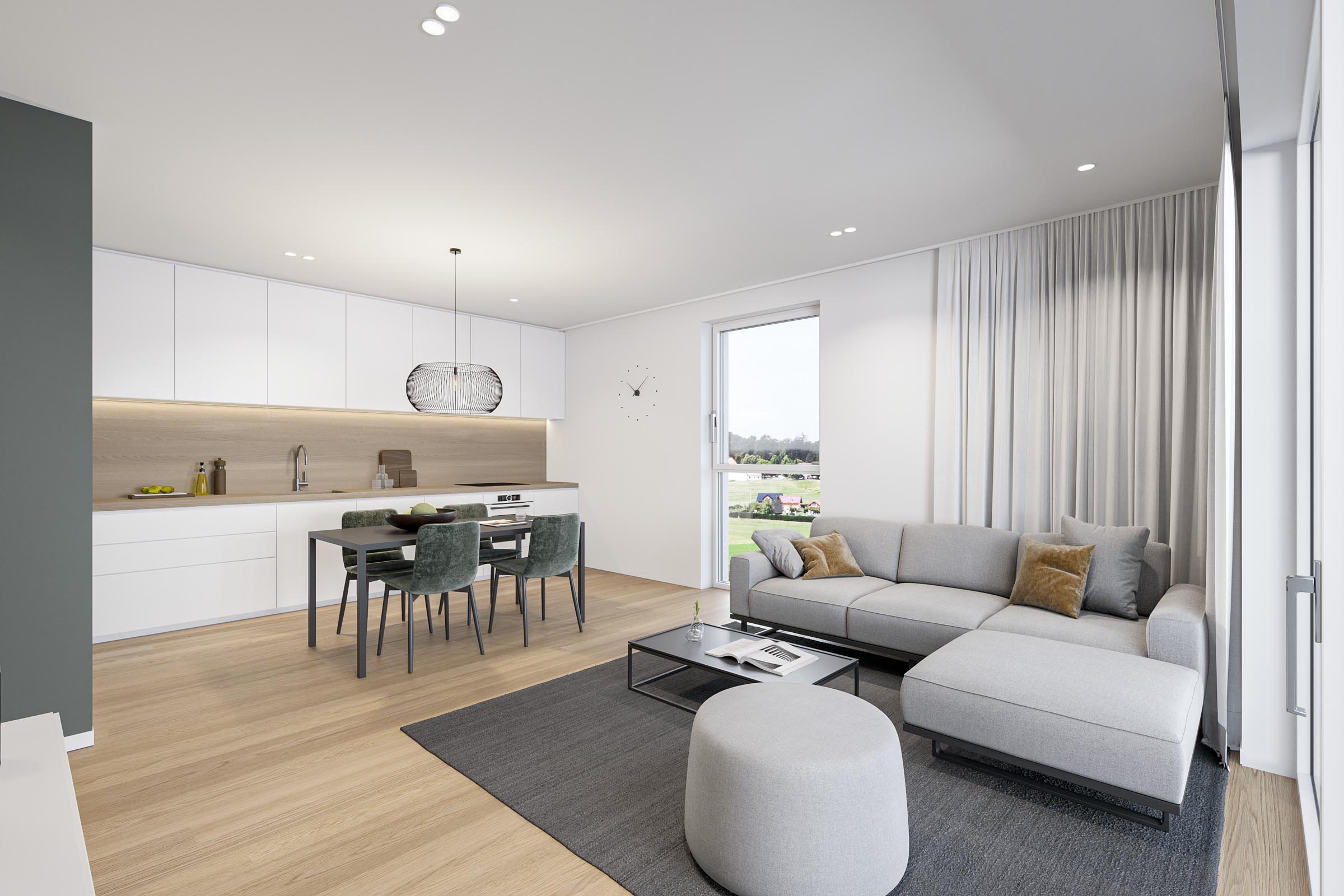 Prodamo novo stanovanje na odlični in iskani lokaciji v centru POZELE. Stanovanje zajema: predsoba, vhod, shramba, spalnica, soba, dnevni prostor s kuhinjo, kopalnica, balkon in dva parkirna meste v kletni pokriti garaži (doplačilo 29.800 € brez DDV 9,5%).