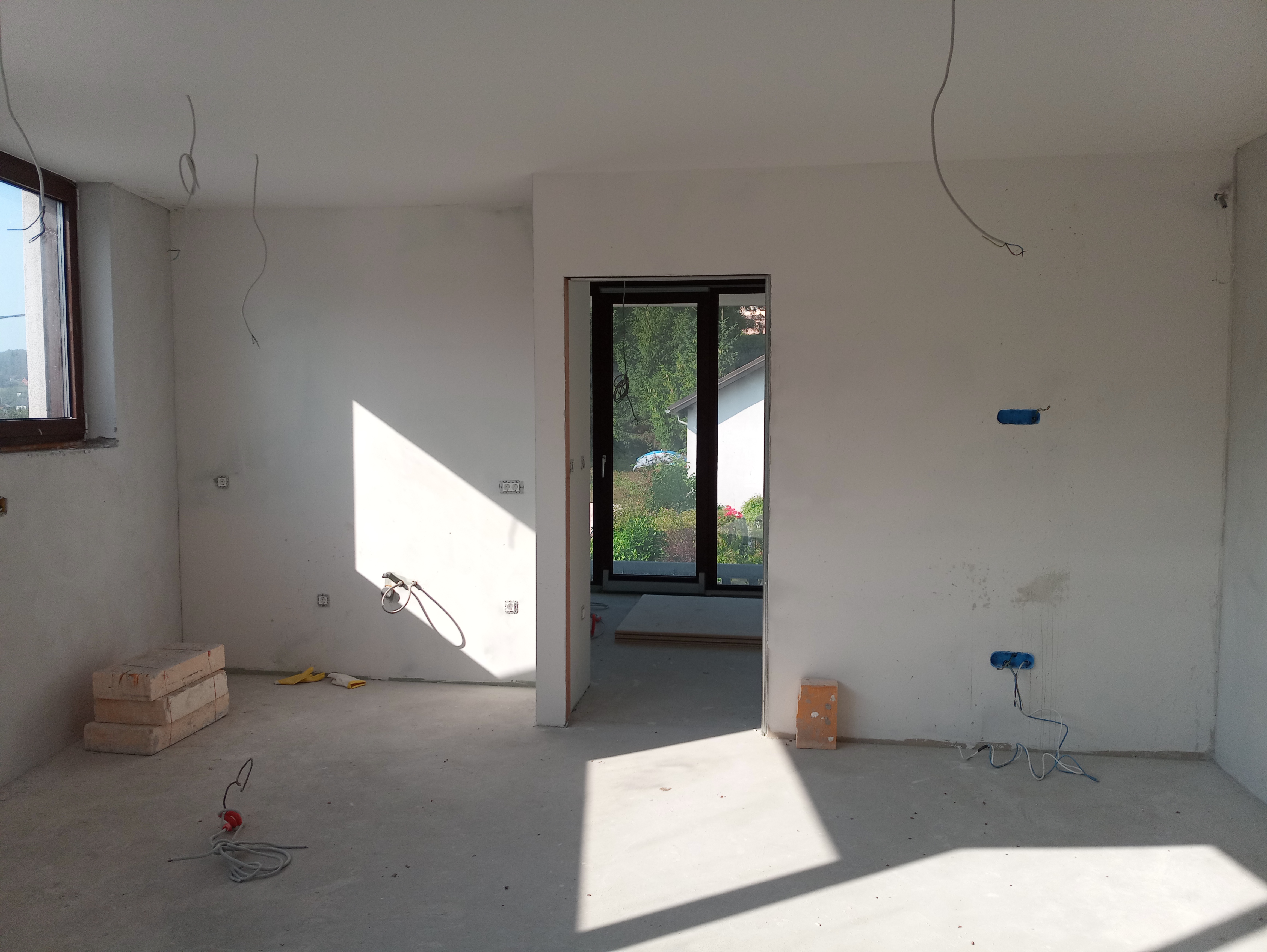 NOTRANJI prostori imajo predviden plavajoči pod. Bivalni dnevni in spalni prostori imajo za talno oblogo predviden parket, kopalnice in vetrolov pa imajo keramično talno oblogo in za 1,5 cm nižji tlak od kote bivalnih prostorov. V kopalnici bo na tleh in stenah položena keramika. V kopalnici bo tudi tuš s stekleno steno in kanaleto, ter druga sanitarna oprema z armaturami višjega srednjega cenovnega razreda.